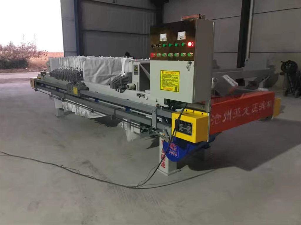 由于壓濾機在過濾時需要一個強大的壓力,只是中空濾板不能承受這個壓力,所以在濾板的排布上,采用了與板框壓濾機相同的排布,采用一空心濾板和一實心濾板交錯排列,這樣_可使得壓濾機在一次過濾過程中能很好的承受壓力,又能在二次擠壓中承擔一個很好的著力點。