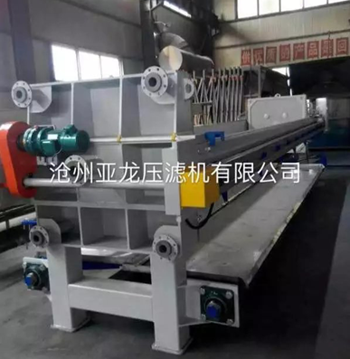 板框壓濾機操作周期, _是壓緊:過濾設備告訴您壓濾機在操作前須要進行整機檢查:查看濾布有無打折或重疊現象,電源是否已正常連接。檢查后即可進行壓緊操作,首先按一下“啟動”按鈕,油泵開始工作,然后再按一下“壓緊”按鈕,活塞推動壓緊板壓緊,當壓緊力到達調定高點壓力后,液壓系統自動跳停。