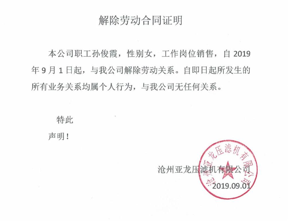 解除勞動合同聲明