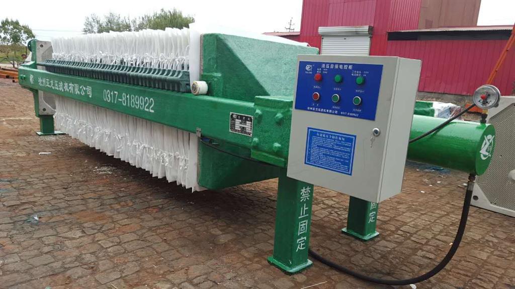 使污泥在脫水過程中所受的壓榨力不斷增高,污泥中水份逐漸脫除。隔膜壓濾機濾板與濾布之間加裝了一層彈性膜的壓濾機。使用過程中,當入料結束,可將高壓流體或氣體介質注入隔膜板中,這時整張隔膜_會鼓起壓迫濾餅,進而實現濾餅的進一步脫水,_是通常講的壓榨過濾。壓濾機利用一種特殊的過濾介質,對對象施加壓力,使得液體滲析出來的一種機械設備,是一種常用的固液分離設備。廣泛應用于化工、制藥、冶金、染料、食品、釀造、陶瓷以及環保等行業。